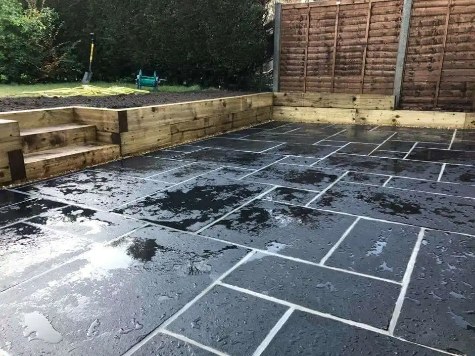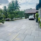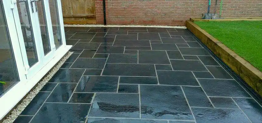 Anchor your design with the unparalleled sophistication of Jet Black. This dense, fine-grained stone offers a dramatic and consistent tone of deep charcoal grey that transforms into an intense, rich black when wet or sealed. It is the ultimate choice for creating high-impact, minimalist, and contemporary outdoor spaces.